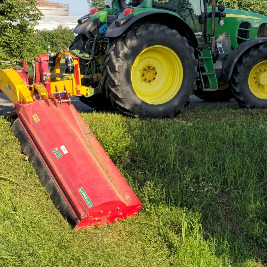 Malčer za malčiranje trave i niskog raslinja, isti malčer može biti na zadnjem dijelu traktora kao i na prednjem prednost na prednjoj strani jer kotači ne gaze travu koju je potrebno malčirati ostaje čista površina